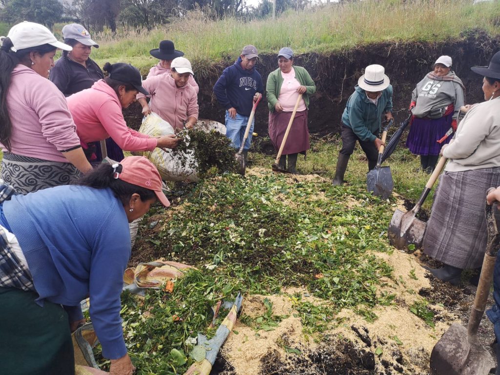 El Ministerio de Agricultura y Ganadería Zona 6, en cumplimiento del convenio con Electro Generadora del Austro ELECAUSTRO S. A. y los GAD parroquiales de Baños y San Joaquín en el marco del Comité de Conservación de la Cuenca del Río Yanuncay, impulsa la producción orgánica con productores de Moraspamba Susun-Nero, elaborando abono bocashi para sus cultivos.